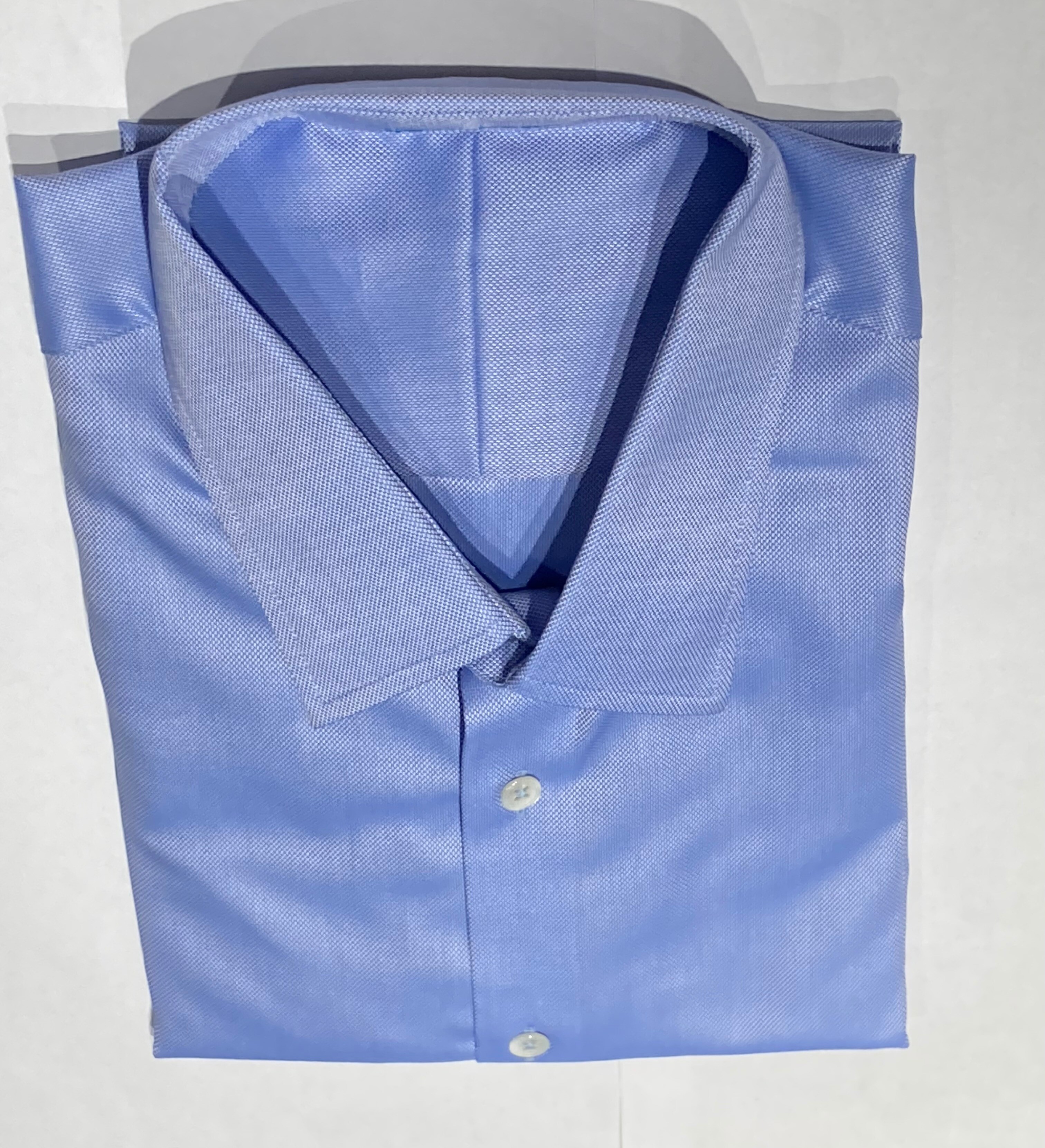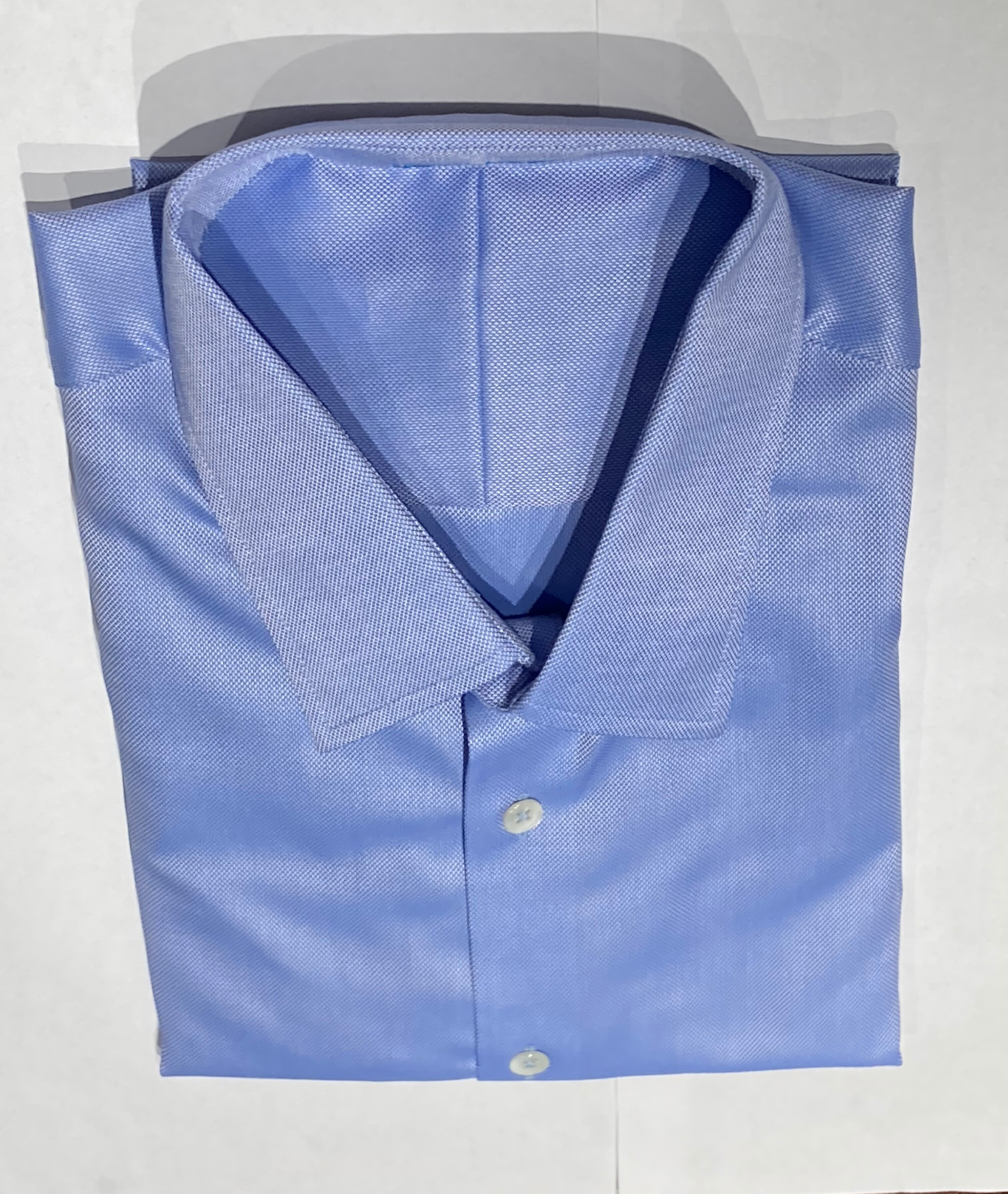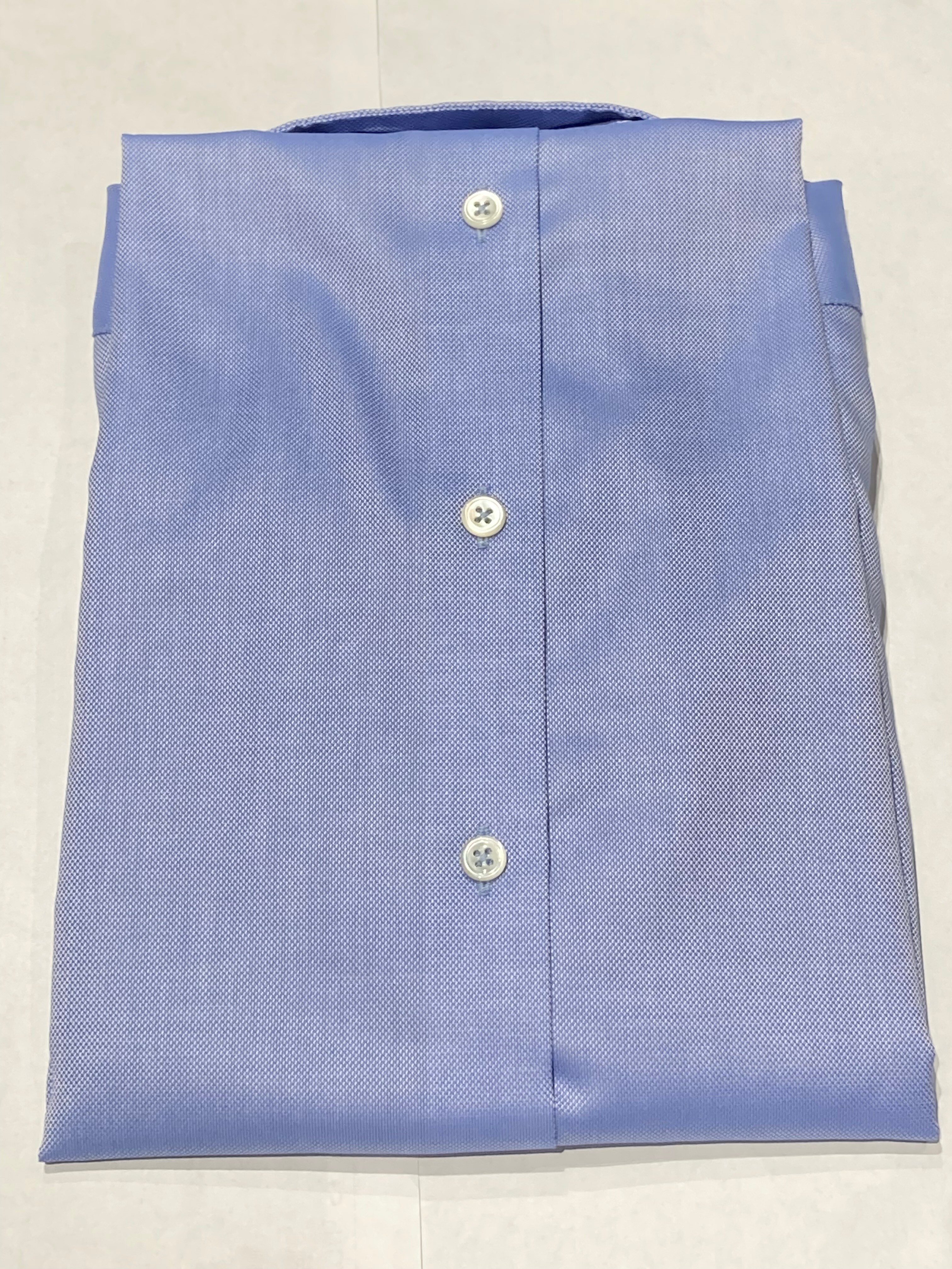 Medium blue dobby shirt with round barrel cuffs and classci collar. Fabric code: P14B. Dobby weave. Customize the collar size, sleeve length and fit. Extra collar and cuffs available to make your shirt last longer. Optionally embroider your name or monogram.